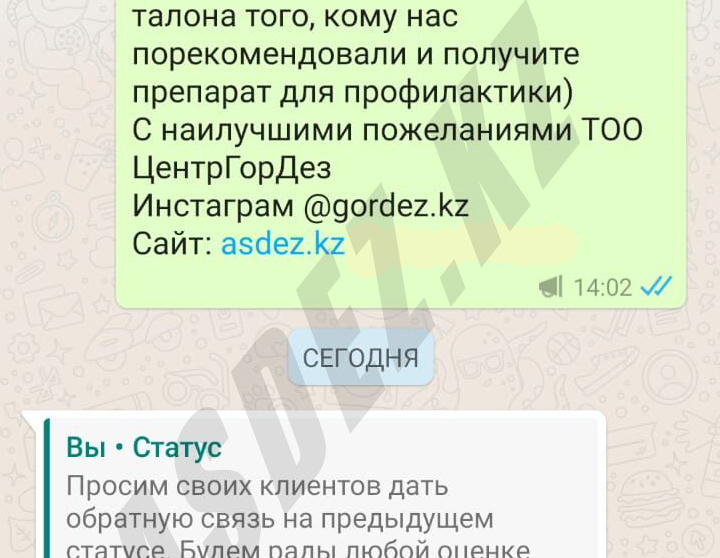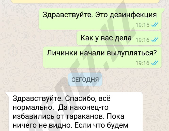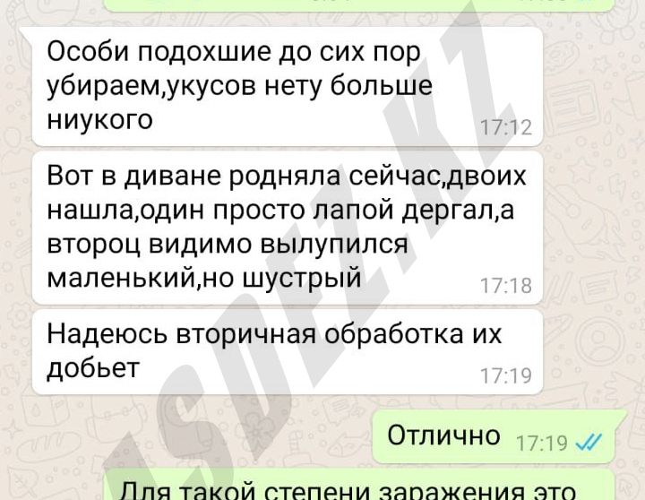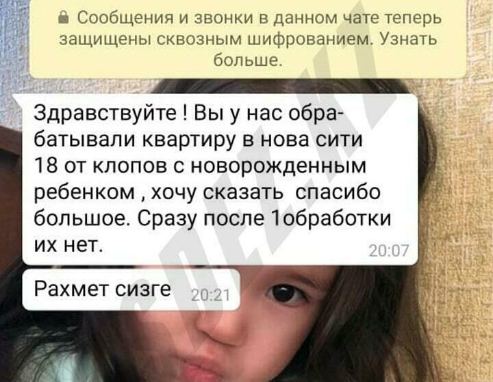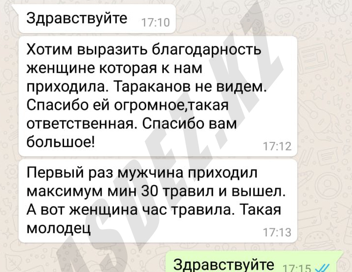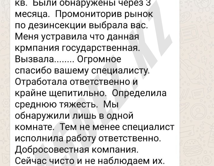ТОО "ЦентрГорДез" оказала нам услугу по уничжению клопов в многоквартирном доме. Уже год живем без клопов. Успехов Вам и процветания!
